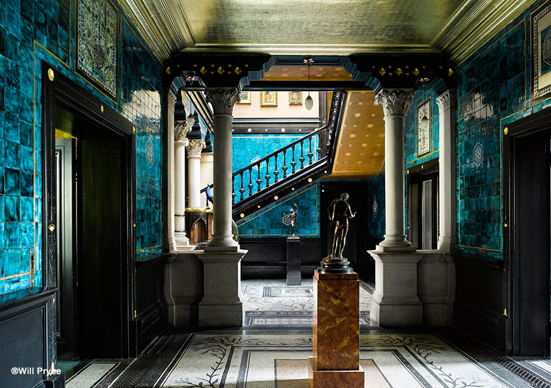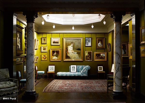 シルクルームはレイトンが死ぬ1年前にでき上がった部屋で、彼の絵画や彼の友達の絵画を飾る部屋、プライベートギャラリースペースとしてつくられました。シルクルームというだけに、壁には一面シルクのファブリックが貼られていて高級感溢れるお部屋。