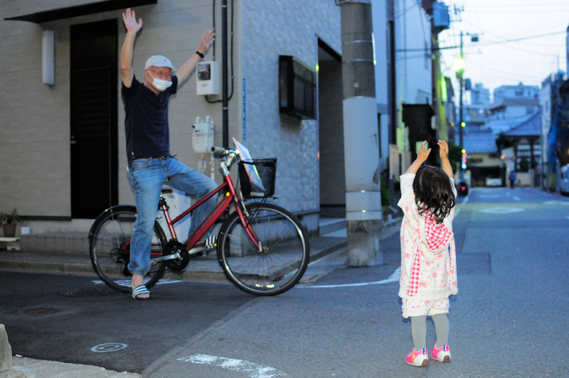 出たね「バンザイおじさん」近所のおじさんなんだけど、キミに会うと必ず「バンザイ」してくれるね。